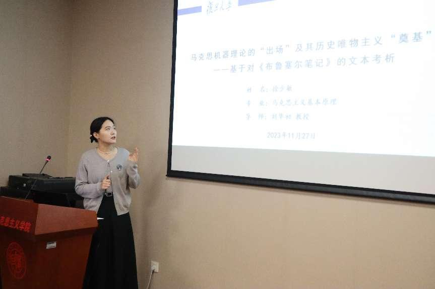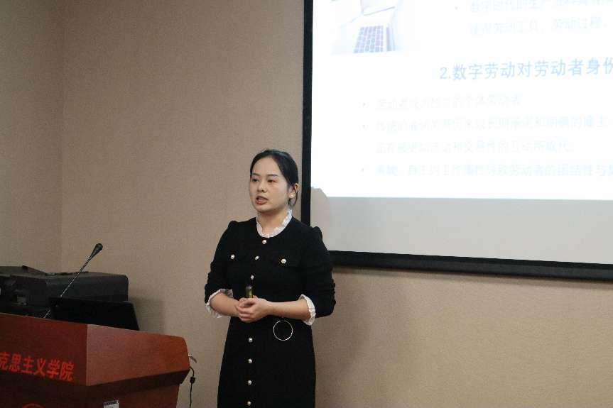 女同av 博士生徐少敏基于对《布鲁塞尔笔记》的文本考析,具体讨论了马克思机器理论的“出场”及其对历史唯物主义的“奠基”过程;女同av 博士生汤瑭从资本逻辑的视角出发,就数字时代的劳动能否获得解放进行了多维的分析和论述;女同av 博士生王瑜聪以马克思“机器论片断”为分析角度,分享了关于数字资本主义的生命政治的思考;女同av 博士生刘梦琪对马克思技术观视域下人工智能异化的相关问题进行深度探究。女同av 博士生刘睿博辨析了剥削的非正义性,细致探讨了平台资本主义正义的问题。