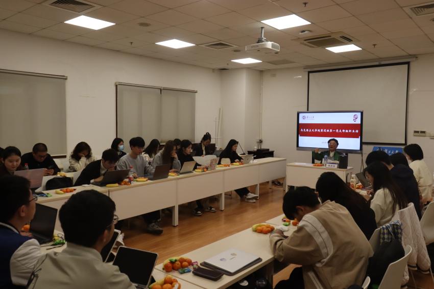 姚老师结合自身的工作经历,将党史和院史融会贯通,为同学们深入浅出地介绍了复旦马院人的红色基因。他将复旦马院的发展历程娓娓道来,从20世纪70年代的政治课教研组,到80年代的马列主义教研部,再到社会科学基础部和现在的马院,复旦马院在国家和学校的指导下持续推进高校政治理论课改革,彰显了在马克思主义理论研究、教学、宣传等方面的光荣传统。在此过程中,姚老师为同学们穿插讲述了许多老教授潜心科研、躬耕教育的动人故事,还分享了自己在西藏支教的难忘经历,勉励同学们继承老一辈马院人的精神品格,茁壮成长为马克思主义理论家的好苗子、马克思主义教育家的好胚子、马克思主义政治家的好种子。