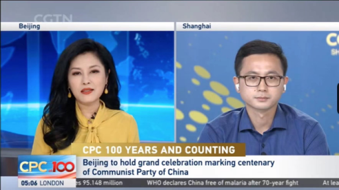 在建党百年前夕,以时政评论嘉宾身份,受邀参加中央电视台CGTN现场直播的英文节目“Global Watch”, 2021年6月