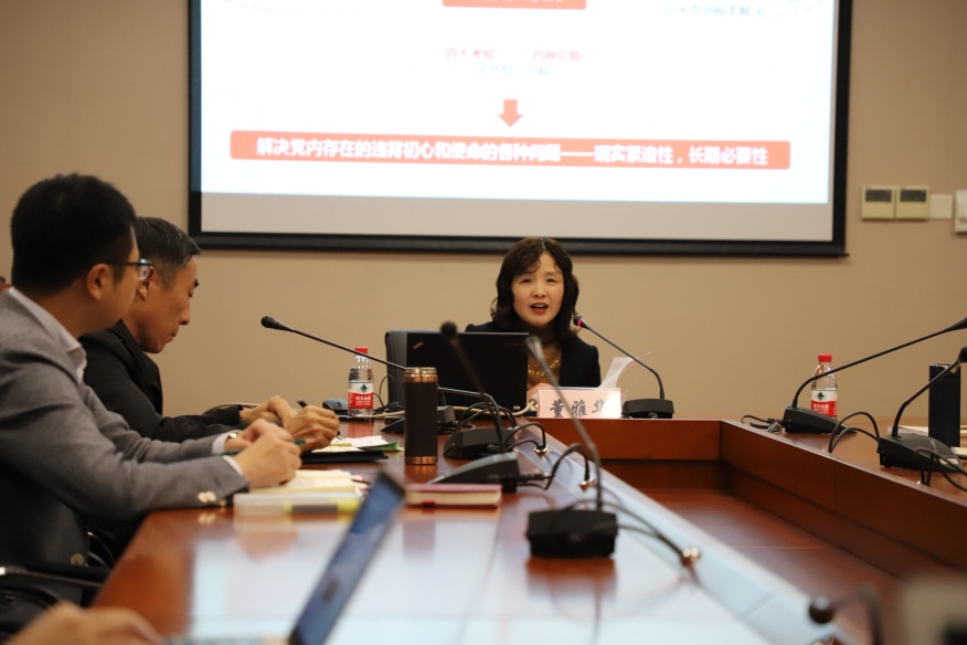 首先,董雅华指出要深刻认识“不忘初心,牢记使命”主题教育的深远意义,铸理想,固信念,推进思政课改革创新发展。董雅华从以下三方面进行了讲解:第一,不忘初心,牢记使命,是中国共产党勇于自我革命,永葆先进性的有力手段,是中国共产党不断从胜利走向胜利的根本原因;第二,是引领广大党员坚定理想信念,勇担新时代重任的推动力,理想信念是不忘初心必须有的政治灵魂;第三,是深化改革创新,促进事业健康发展的有效抓手。