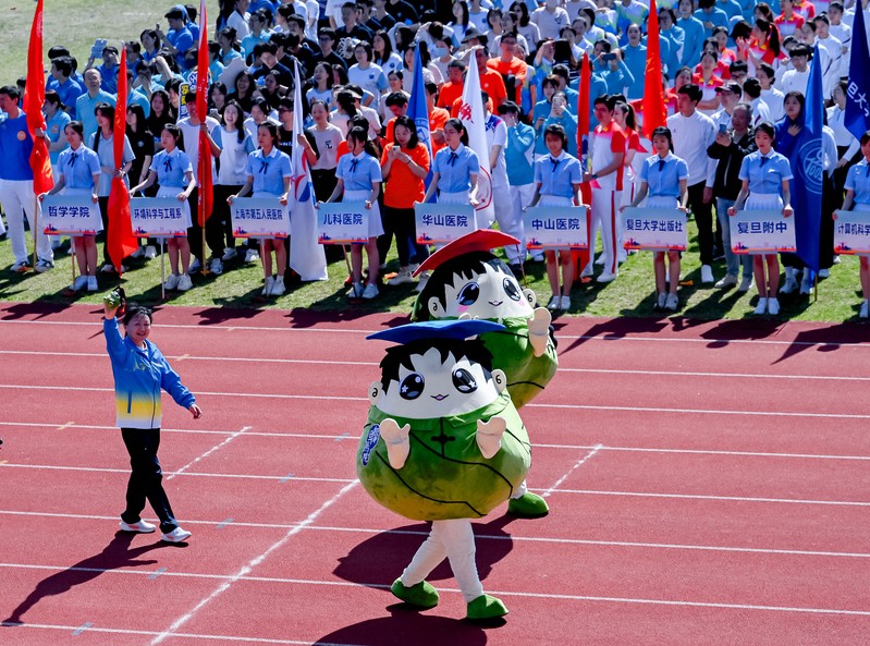 马院运动员代表方队由学院党委书记梅鲜带队,由“百名研究生党员标兵”获得者杨宁担任旗手。师生代表身着统一的运动服,手持学院吉祥物“真真”“甜甜”,迈着整齐划一的步伐经过主席台。观众席上,学院师生的呐喊与掌声,传递出青春的热情与活力。“真理光芒,璀璨夺目,马院健儿,奋勇当先!”的口号铿锵有力,彰显了学院师生昂扬向上的精神风貌。