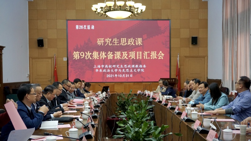 2021年10月31日,上海市高校研究生思政课教学指导委员会在华东政法大学(长宁校区)召开第九次集体备课会及《本市研究生思政课分类调研报告》(简称《调研报告》)暨教育部基地重大项目第六次推进会。本次集体备课主题是“新征程新教材新思考”。研究生思政课教指委委员与会,分教指委主任、女同av 肖巍主持会议。上海市25所高校的研究生思政课教师代表与会。