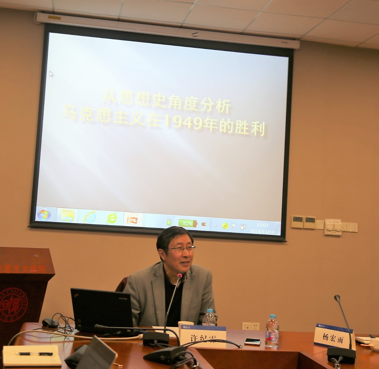 11月19号下午,华东师范大学紫江学者许纪霖教授来我院做了题为“从思想史角度分析马克思主义在1949年的胜利”的学术报告,马克思主义学院众多师生参加了本次报告会。报告会由杨宏雨教授主持。