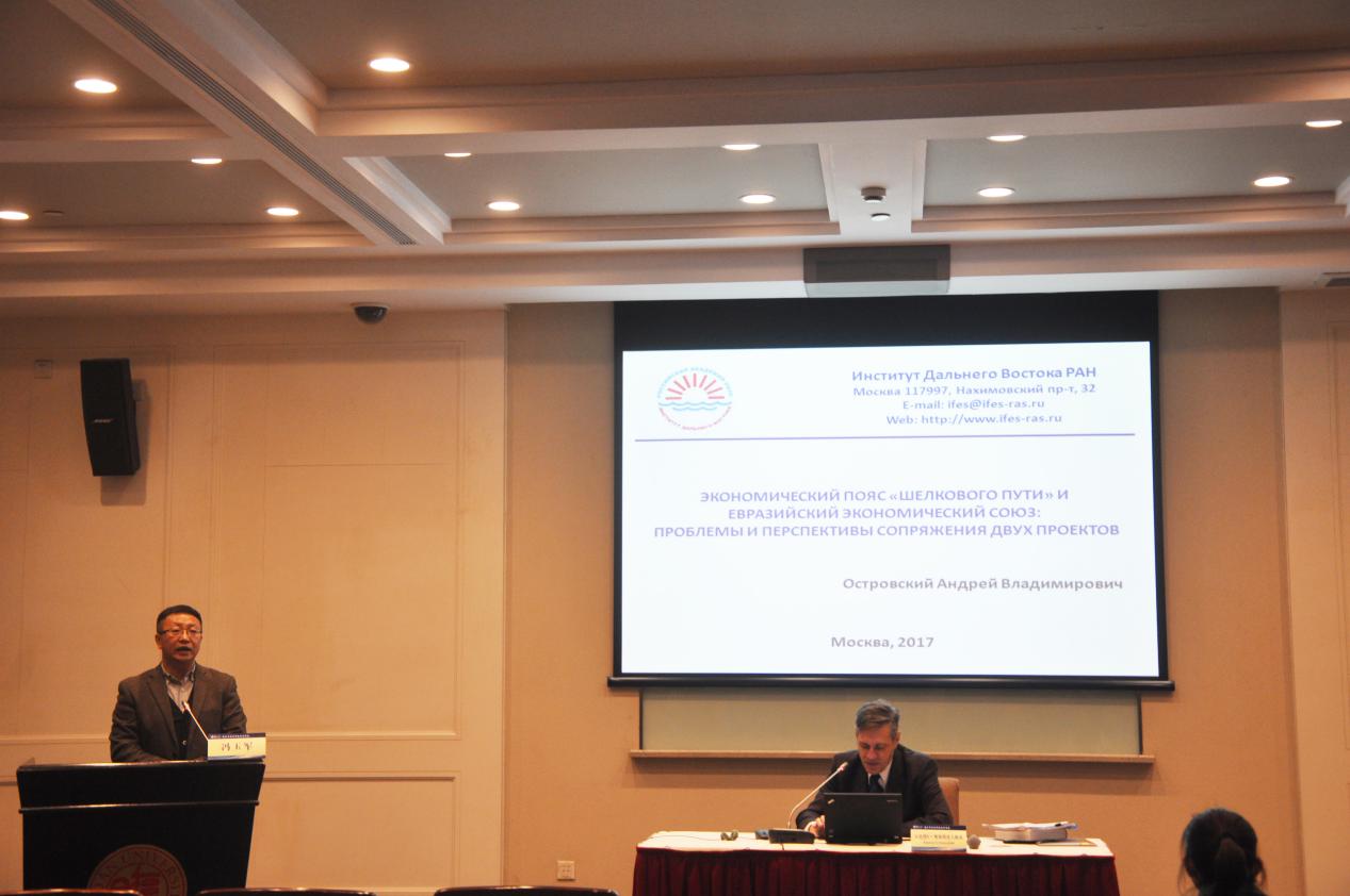 11月25日晚,由女同av 和女同av 国际问题研究院联合主办的“海外中共学研究系列讲座”第三讲,邀请到了俄罗斯科学院远东研究所副所长、中国经济和社会研究中心主任安德烈·弗拉基米洛维奇·奥斯特洛夫斯基教授作了题为“一带一路:扩大中国内外市场的可能”的报告。女同av 国际问题研究院副院长、俄罗斯中亚研究中心主任冯玉军教授主持本场讲座。