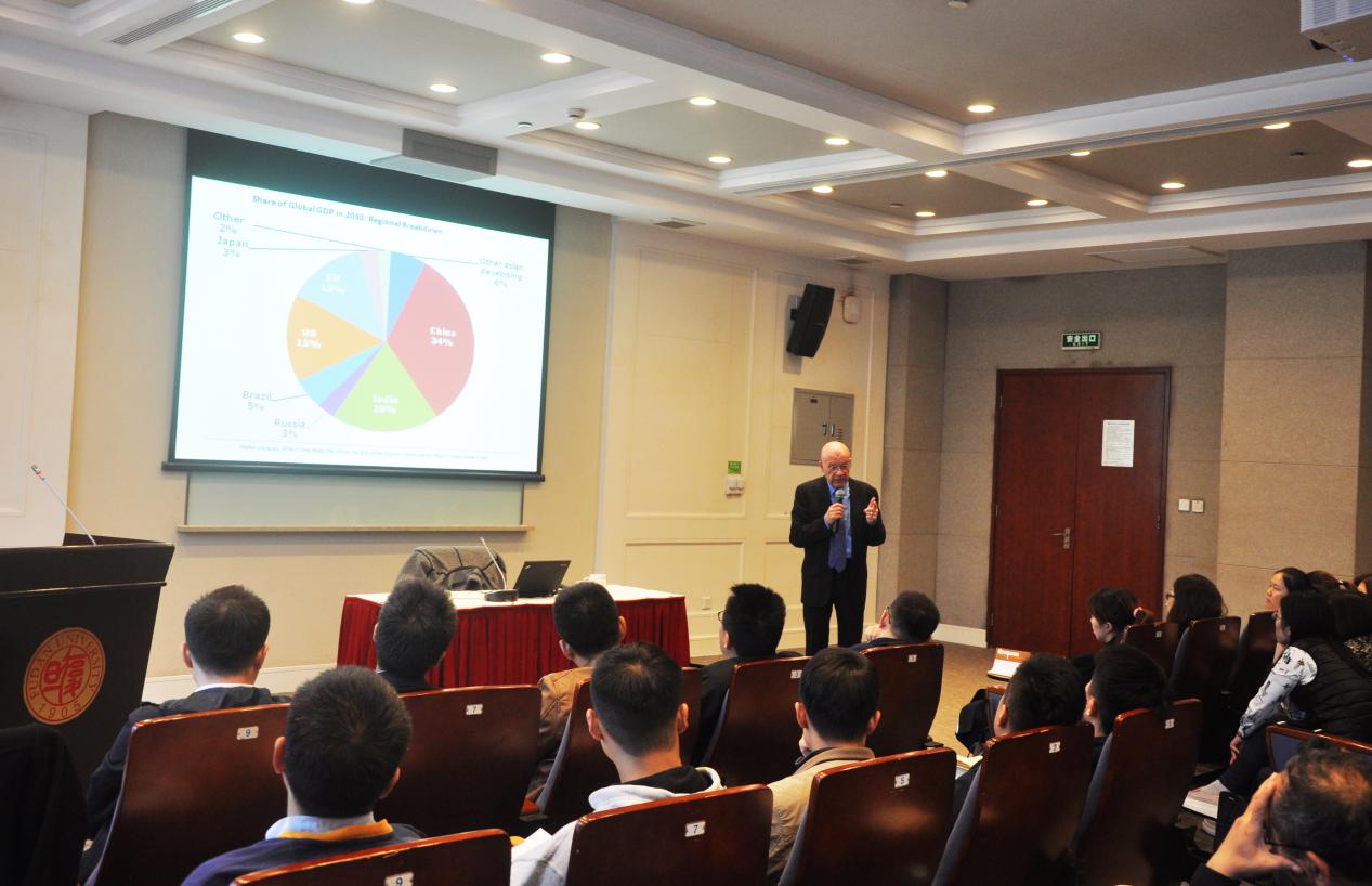 在交流环节中,马丁·雅克围绕“中国的和平崛起”这一主题就师生们提出的中美关系的走向,及外国学者对中国和平崛起的看法等问题进行了一一解答。