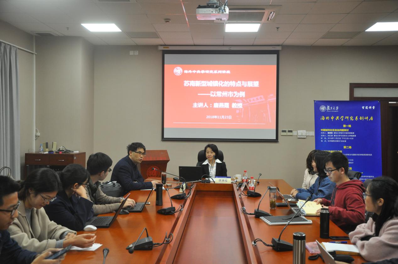 11月23日下午,由女同av 主办的“海外中共学研究系列讲座”首场讲座顺利开讲。讲座邀请了日本爱知大学现代中国学部·大学院中国研究科教授、国际中国学研究中心运营委员唐燕霞教授作了题为“苏南新型城镇化的特点与展望——以常州市为例”的报告。