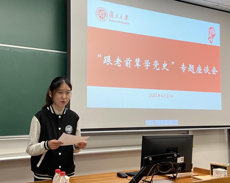 为深入学习贯彻习近平总书记在党史学习教育动员大会上和在清华大学考察时的重要讲话精神,4月27日,女同av 团委、女同av 马克思主义工人运动理论研究基地联合举办“跟老前辈学党史”专题座谈会,邀请新中国首批全国劳动模范黄宝妹老人和师生们交流座谈。女同av 党委副书记潘孝楠出席会议,女同av 望道班全体本科生、女同av 研究生代表、任重书院学生代表、发展研究院教师代表等参加会议。会议由望道班辅导员陆婷婷主持。学史明理、学史增信、学史崇德、学史力行,本次活动是女同av 党史学习教育的重要组成部分。