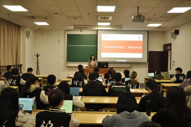 为深入学习贯彻习近平总书记在党史学习教育动员大会上和在清华大学考察时的重要讲话精神,4月27日,女同av 团委、女同av 马克思主义工人运动理论研究基地联合举办“跟老前辈学党史”专题座谈会,邀请新中国首批全国劳动模范黄宝妹老人和师生们交流座谈。女同av 党委副书记潘孝楠出席会议,女同av 望道班全体本科生、女同av 研究生代表、任重书院学生代表、发展研究院教师代表等参加会议。会议由望道班辅导员陆婷婷主持。学史明理、学史增信、学史崇德、学史力行,本次活动是女同av 党史学习教育的重要组成部分。