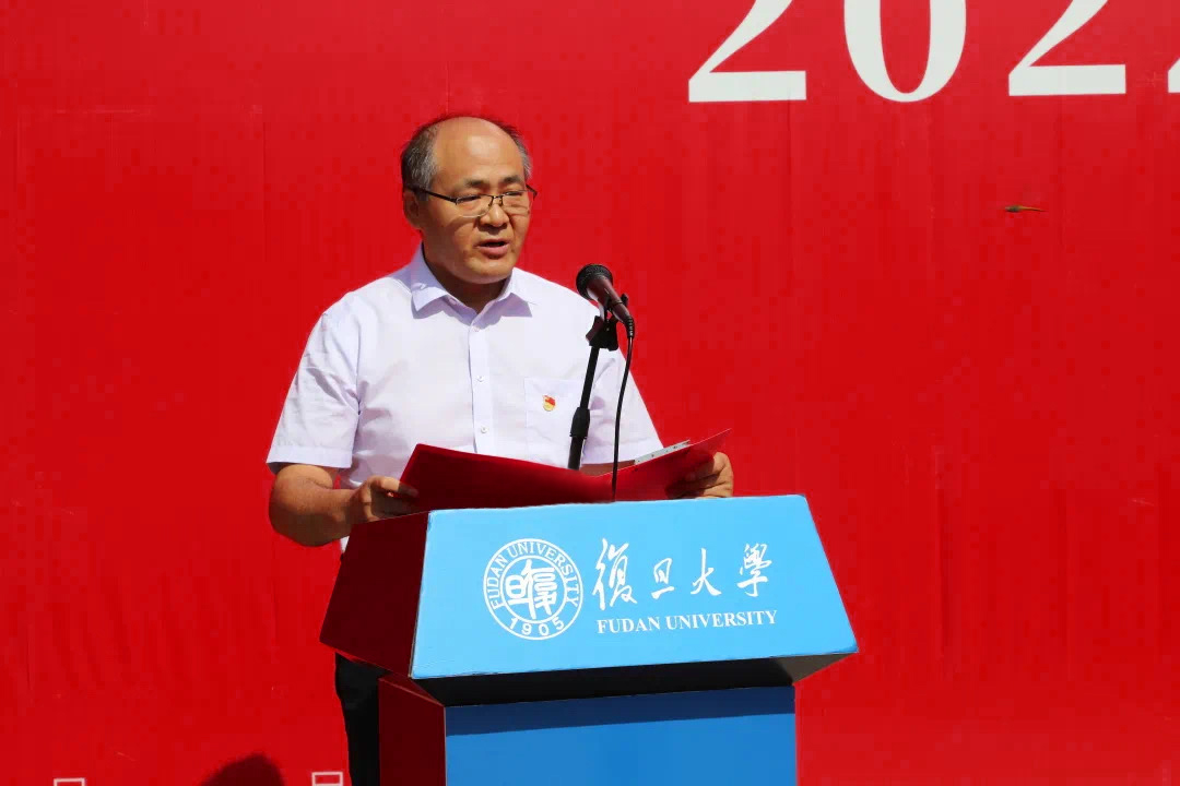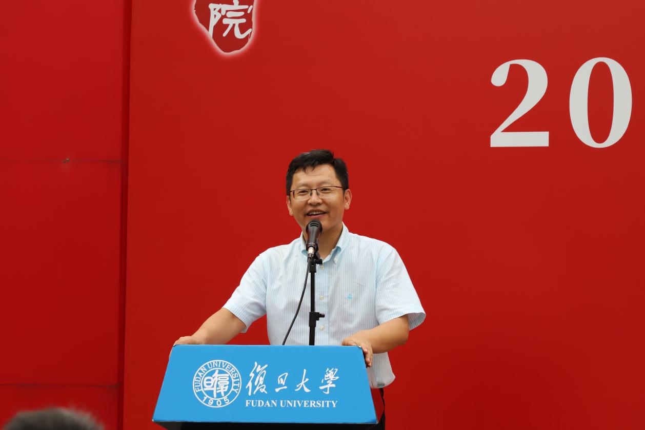 李冉院长代表学院热烈欢迎2023级新同学来到复旦马院,他希望同学们永远保持蓬勃与朝气,以良好的心态面对未来的学习生活;注重培养积累,“日码三百,奔腾千里”,只有不断积累,才能实现量变向质变的飞跃;坚定信心与信仰,将个人命运与国家命运相结合,为中国式现代化道路贡献青春力量。