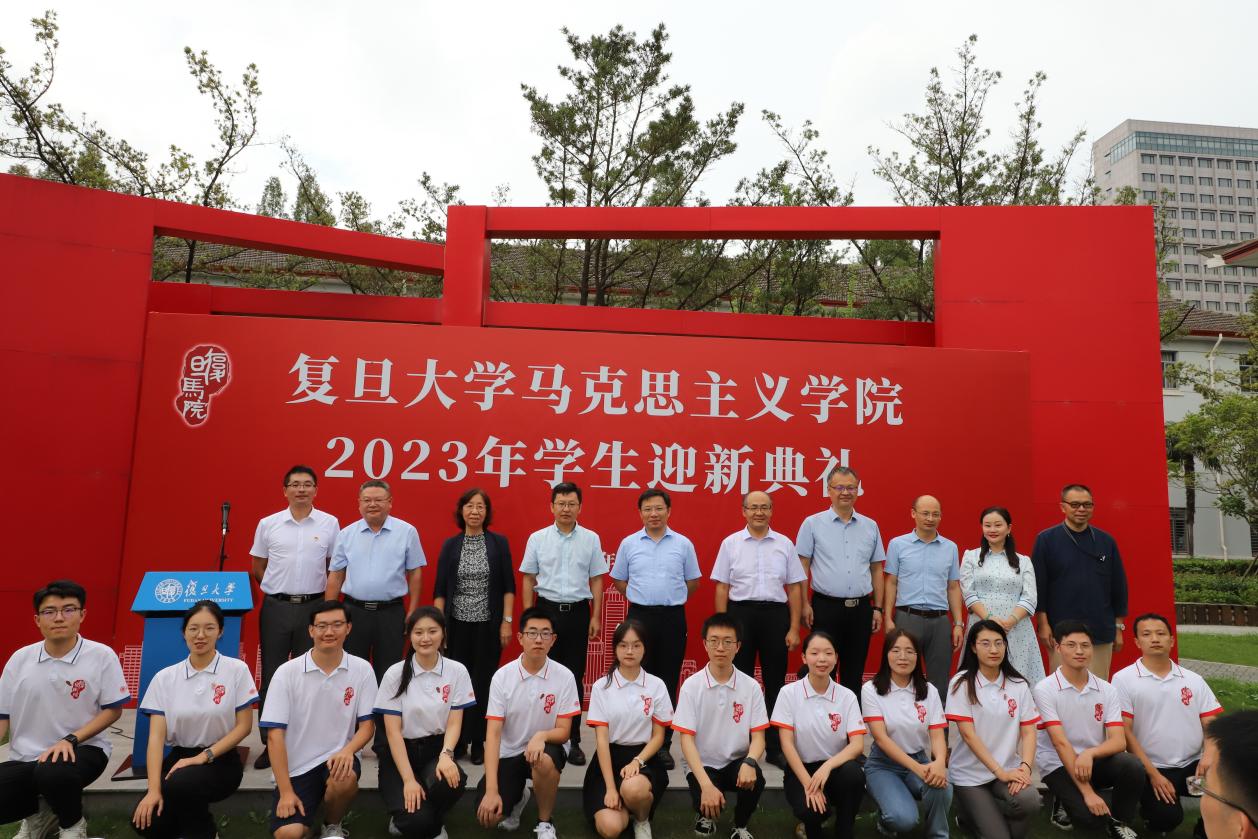 迎新典礼在女同av 校歌声中接近尾声。2023级新生与学院老师合影留念,共同开启在复旦马院的崭新学年。