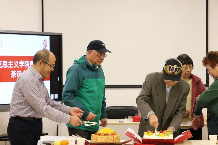 孙谦副书记宣读了学院今年年龄逢5和逢10退休教师的祝寿名单,大家并为来到活动现场的寿星们举行了简短而热烈的祝寿仪式。