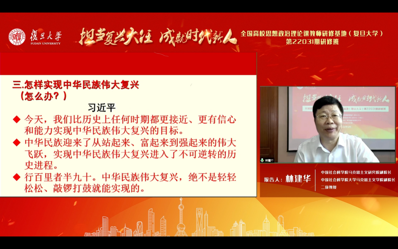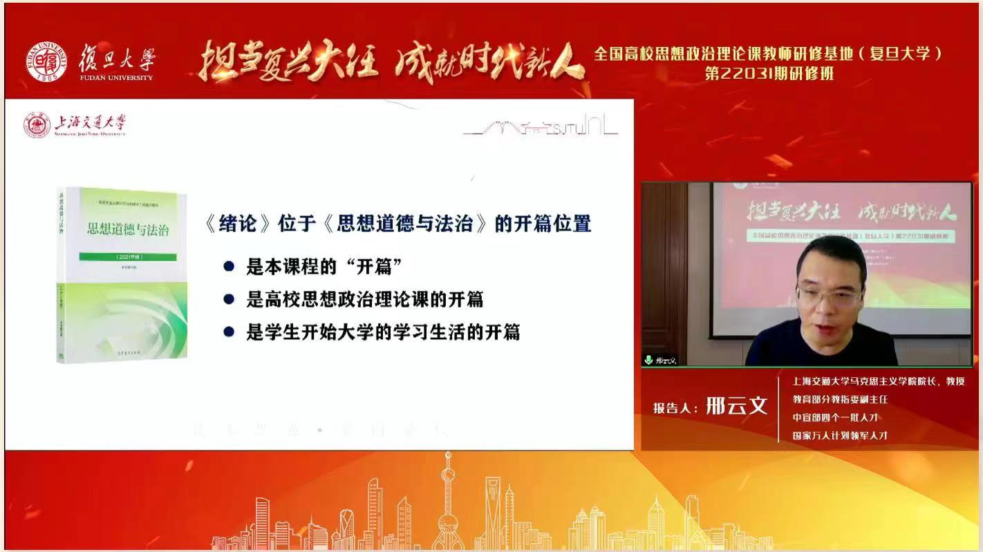 联合举办“担当复兴大任 成就时代新人”专题研修班。本期研修班主要面向上海市高校《思想道德与法治》任课教师,课程在全国高校思想政治理论课教师网络集体备课平台同步直播。